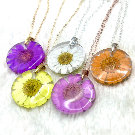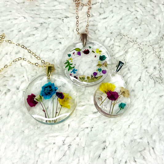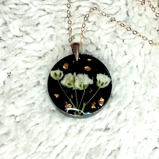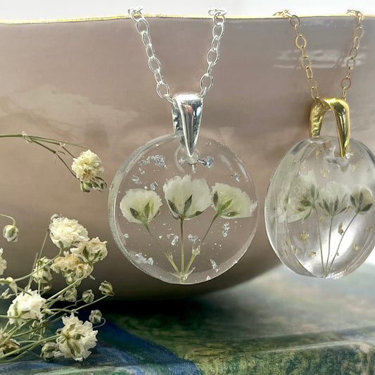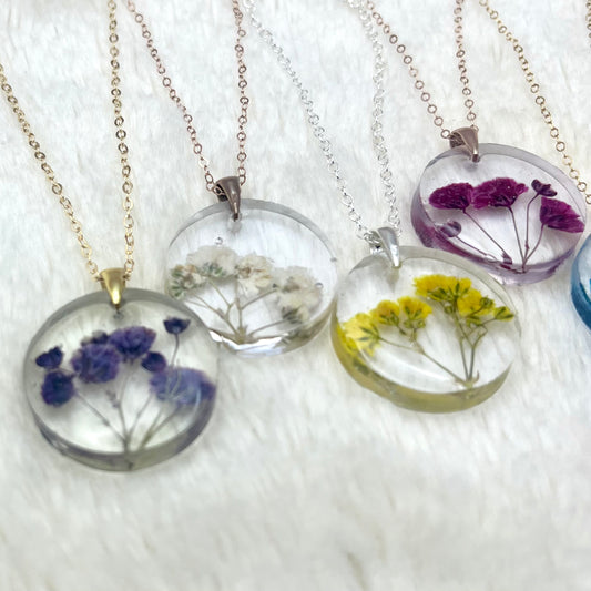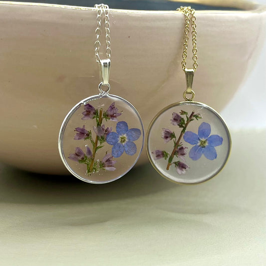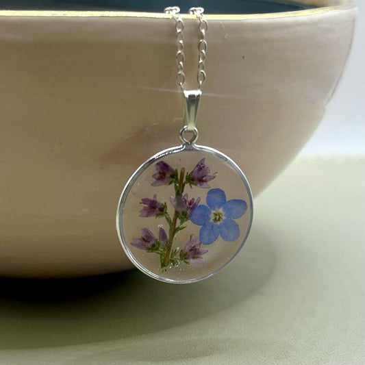Flower Meadow Necklace - Scottish Heather, Forget me not, Gypsophila